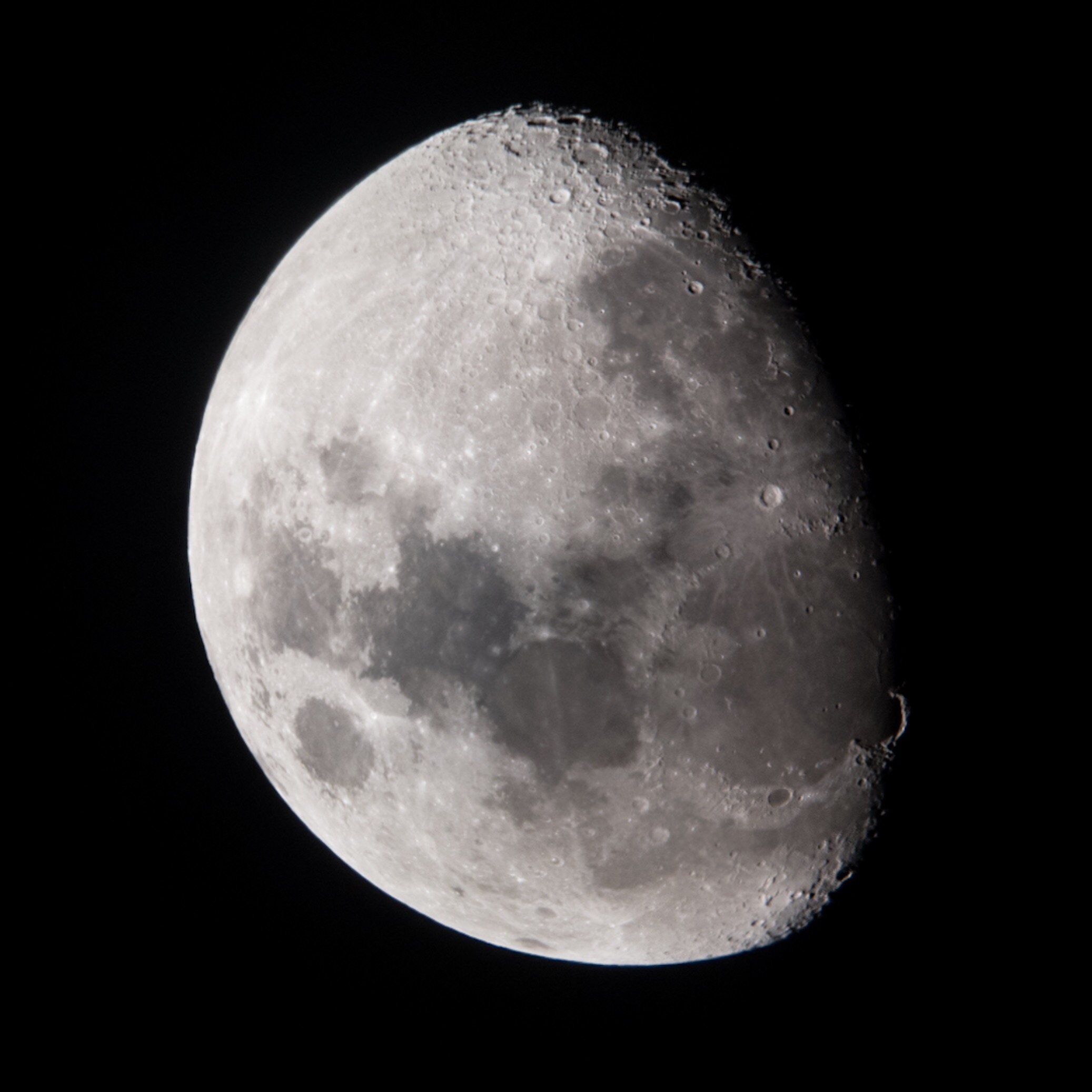 Once the light had truly gone my photography was over (or so I thought) and we were able to start viewing the stars through the hefty reflector telescopes set up for our use. They had cameras connected too and I was wishing I could have attached my Nikon. Planets, stars, star fields, galaxies and nebulae were shown to us, and we were enthralled – our only disappointment being the presence of a high gibbous moon that cast such a light as to wash out many of the stars and the ribbon of the Milky Way. On the other hand, we were able to study the moon in close up and despite the lack of a DSLR a quick but difficult presentation of the iPhone to the telescope revealed an amazing shot of the moon, which turned out to be sharp despite shivering with the intense cold at 7000 feet. So thanks to the people at ‘Teide By Night‘ for that.